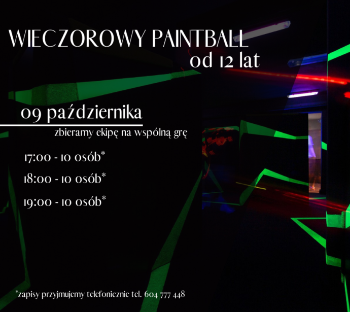 Wieczorowy Paintball Laserowy – wydarzenie dla nieco starszych dzieci! 9 października zbieramy ekipę młodzieży, dzieci powyżej 12 roku życia, do wspólnej gry w paintball laserowy.…